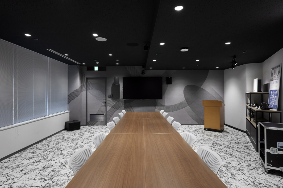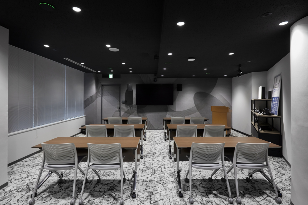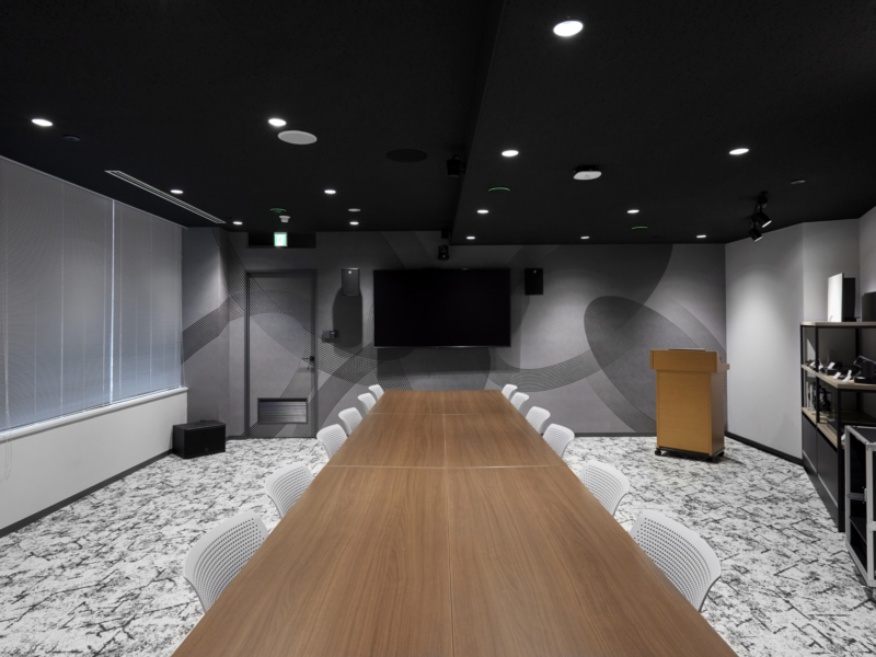 ショールームの新設に際し、取り扱う音響機器や品質の良さを表現するデザインでオリジナル壁紙を制作、施工しました。グラフィックが空間のポイントとなり、ショールームを訪れるお客様と会話の糸口になる点もご評価いただきました。