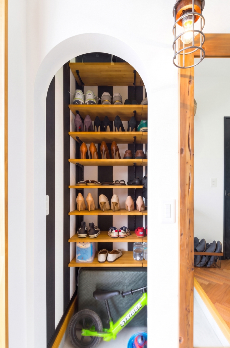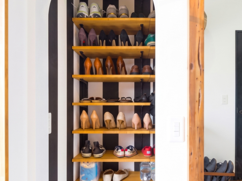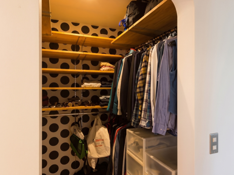 さらに、壁面のリニューアルに合わせ棚板を無垢材のものに作り替え、収納家具もキャスター付き収納棚が収納できる仕様でオーダーメイドいたしました。